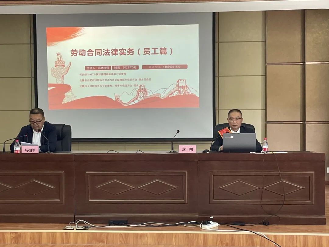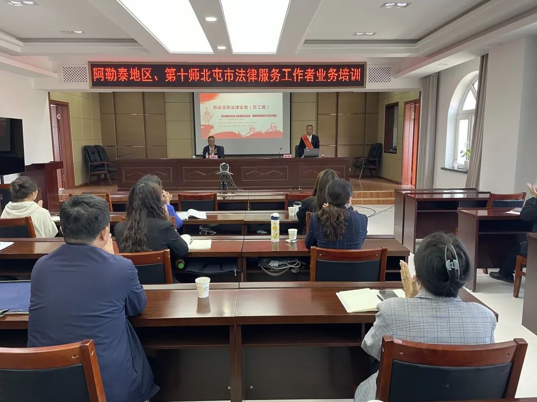 为丰富法律服务工作者法律实务知识,提升法律从业者实践技能,共同推进法治国家、法治政府、法治社会的一体化建设,5月18日,安徽华人律师事务所专职律师、司法部“1+1”中国法律援助志愿者行动新疆福海县援助律师、合肥市律协劳动与社会保障法专业委员会副主任高明,应新疆维吾尔自治区阿勒泰地区司法局的邀请,出席阿勒泰地区、第十师北屯市法律服务工作者业务培训大会,通过线下讲授、线上视频的方式为阿勒泰地区、北屯市各司法局、及司法所干部、律师、法律服务工作者等300余人进行《劳动合同法律实务》培训。
