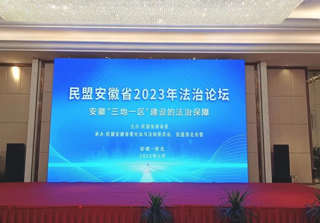 5月23日至24日,2023年民盟安徽省法治论坛在安徽省淮北市隆重举行。本届论坛以“安徽‘三地一区’建设的法治保障”为主题,贯彻落实习近平总书记考察安徽时的重要讲话精神,助力中共安徽省委省政府提出的打造“三地一区”、建设新阶段现代化美好安徽的奋斗目标。淮北市副市长、民盟淮北市委主委陈英、中共淮北市委副书记操隆山出席论坛开幕式并致辞,省政协副主席、民盟安徽省委主委、中科院院士郑永飞出席论坛开幕式并讲话,省政协副秘书长、民盟安徽省委专职副主委候宇虹主持论坛开幕式。
