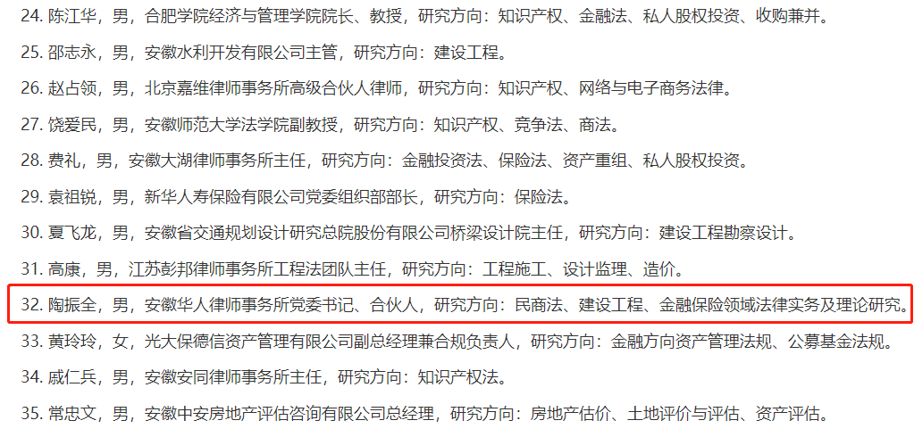 荣誉丨热烈祝贺华人所党委书记、一级律师陶振全博士入选安徽仲裁专家库成员名单(第二批)