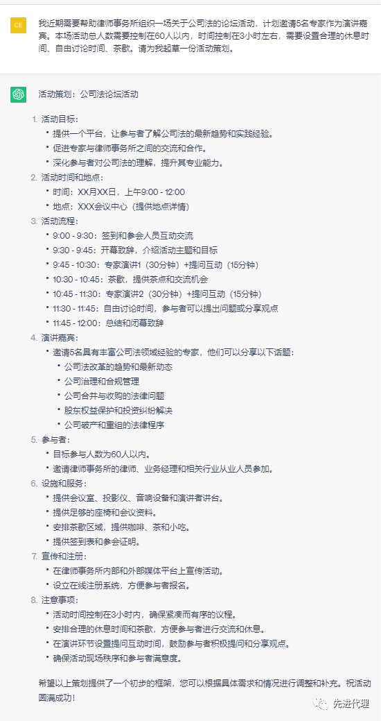 本文的展示不过是ChatGPT能力的冰山一角,鉴于其背后的强大知识库,它的能力远不止于此。本文是“先进代理”栏目的第一篇文章,仅作简介,后续将有更多内容对该技术进行展示和探讨。敬请期待。