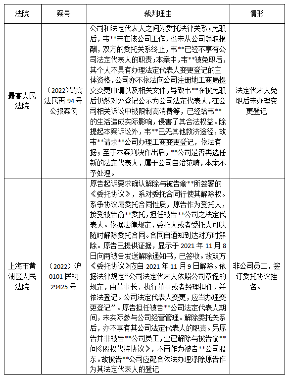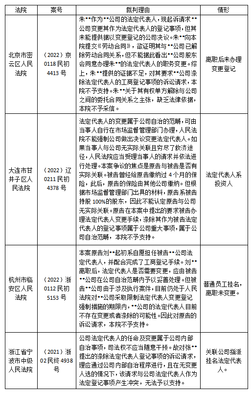 通过检索司法裁判案例可以看出,对于法定代表人涤除登记之诉请求,各法院的判决有极大差异,笔者主要将影响因素归纳为以下几点: