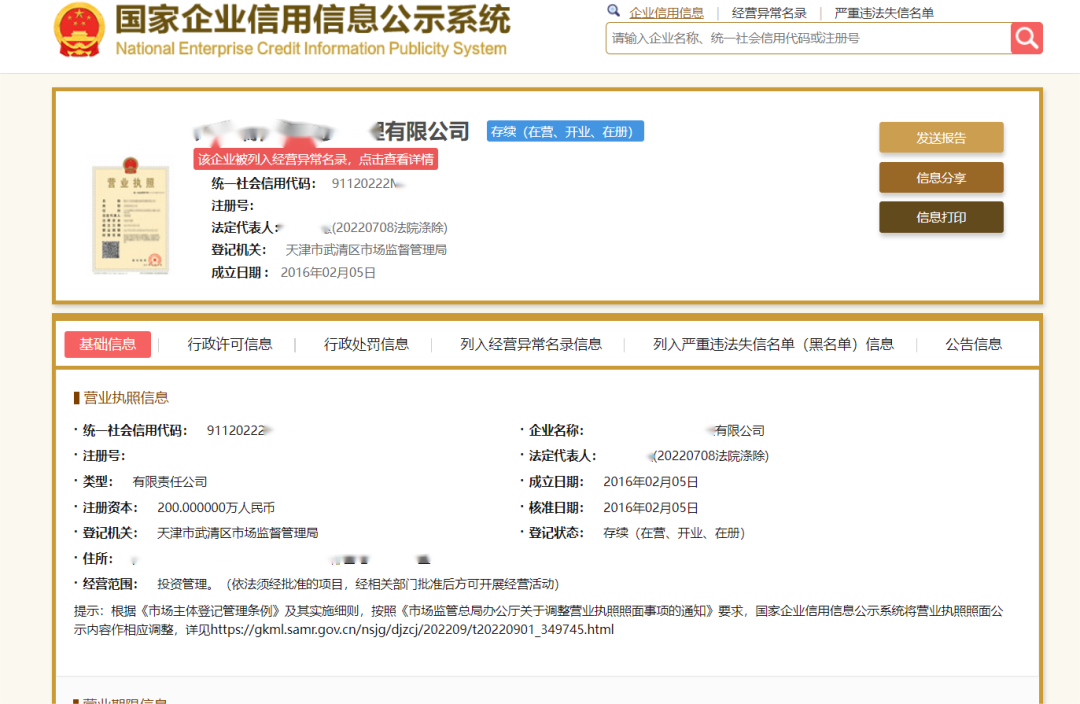 目前,对于法定代表人涤除登记案件的执行具有很大障碍,工商部门对于公司登记中必须要载有法定代表人,而法院的判决是涤除法定代表人,两者相冲突,工商部门协助执行过程中实际操作难度很大,进而导致很多案件都无法执行。笔者通过多方面查询,发现目前的法定代表人涤除登记案件的执行方式有两种变通方式,第一种是法定代表人栏以*代替,另一种是原法定代表人名称保留,但括号备注“已涤除”等字眼,示例如下: