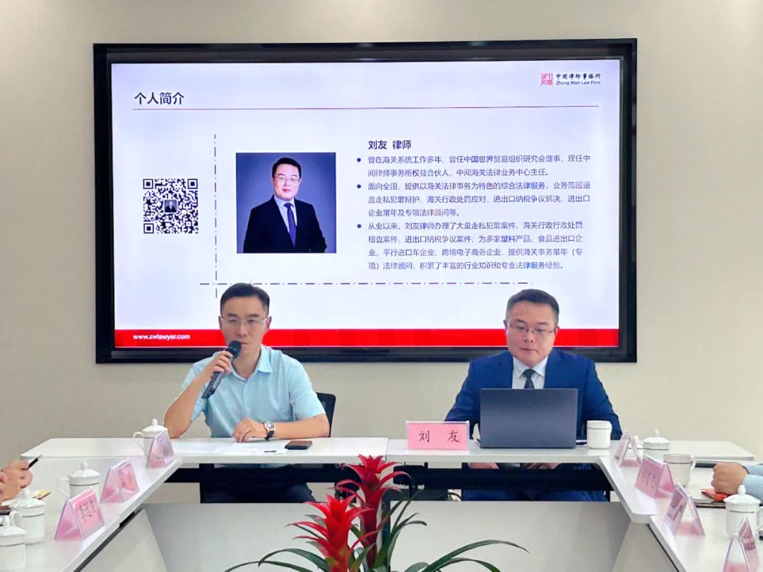 刘友主任以《进出口贸易中的海关事务法律风险防控与合规管理》为题,从目前存在的海关事务法律风险,违规、走私行为与走私罪的区别,海关事务中的常见认识误区与模糊地带,如何进行海关事务风险防控与合规管理四个方面全面介绍进出口贸易中的海关事务的法律知识。并以理论与实务相结合的方式,分享了多个典型的实际案例。整场培训精彩纷呈、干货满满。
