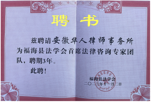 在此会议前,华人所高明律师在福海县进行了两年法律援助工作,两地结下深厚的情谊。11月,华人所受聘担任福海县法学会首席法律咨询专家团队,聘期3年。后期,华人所将持续为福海县提供专业的法律服务,充分发挥“安新法律服务工作站”法律援助务实举措,延绵两地情谊。