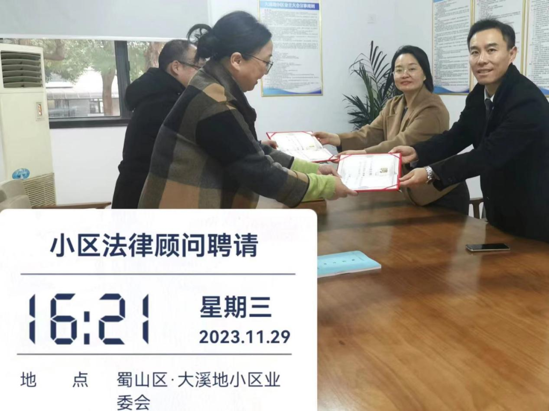 华人所张乐明、刘丽等律师服务团队受聘担任合肥市大溪地小区第二届业委会法律顾问