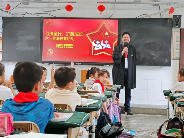为了加强未成年人的法律意识,丰富未成年人的法律知识,在这个欢乐灿烂的六一儿童节来临之际,华人所合伙人律师丁超,带着满满的热情和法律知识,走进了历史悠久、文化浓厚的合肥市大通路小学,为孩子们带去了一场别开生面的普法教育课。