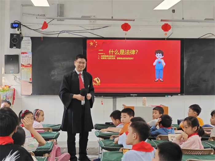 课堂中,丁超律师用生动活泼的语言,为孩子们揭开了律师和法律的神秘面纱。他巧妙地运用了趣味横生的知识短视频,让孩子们在轻松愉悦的氛围中,对抽象的法律概念有了直观的理解。课堂上,孩子们的双眼闪烁着好奇的光芒,他们全神贯注地聆听,仿佛在探索一个新奇的世界。在提问环节,孩子们各个蓄势待发,积极抢答,现场气氛热烈,丁超生动的知识讲解也赢得了孩子们的阵阵热烈掌声!