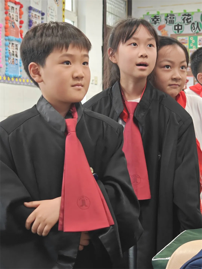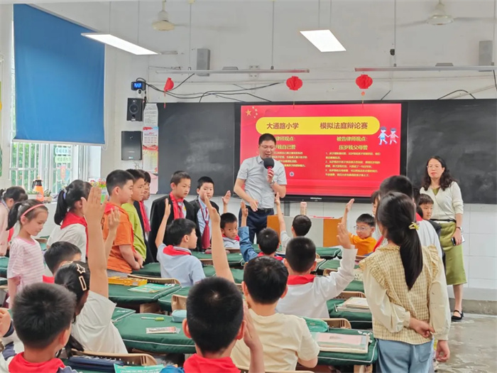 而课堂上最令人兴奋的莫过于模拟法庭辩论赛了!孩子们穿上律师袍,戴上律师领巾,瞬间变身为一个个自信满满的“小律师”。他们分成两队,围绕“压岁钱归父母管还是自己管”这一话题,展开了一场激烈而富有趣味的辩论。这种互动性强、寓教于乐的学习方式,让孩子们对法律的认识不再停留在书本上,而是变得生动、具体,真正融入到他们的心中,激发了他们对法律学习的热情。