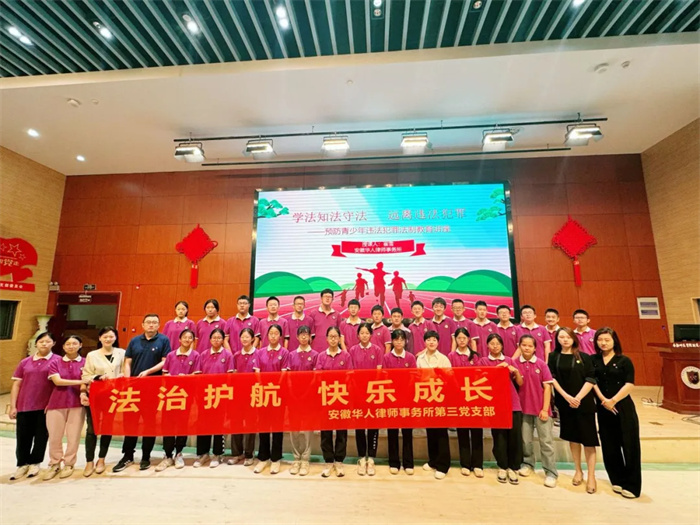 为切实做好法治思想传播工作,加强对青少年的法治教育,做党和人民满意的好律师。6月5日上午,华人所第三党支部的党员律师们走进合肥师范学院附属西安路学校,为来自七年级、八年级的一百多名学生举行“法治护航,快乐成长”普法宣传活动,向青少年传递法律知识和法治理念。