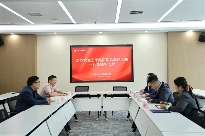 10月28日上午,正荣集团有限公司副总裁赵大鹏、正荣地产合肥公司高级法务经理高凯峰一行莅临华人所开展交流活动,华人所管委会执行主任方廷昌、监委会委员王俊杰、合伙人律师刘兴龙、律师陈晓洁热情接待并参与座谈。