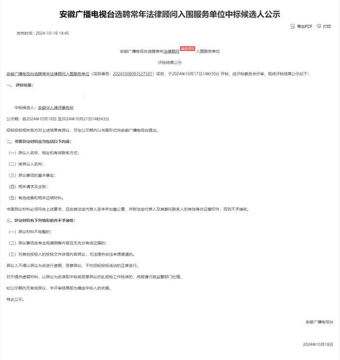 华人资讯 | 华人所中标安徽广播电视台常年法律顾问服务项目