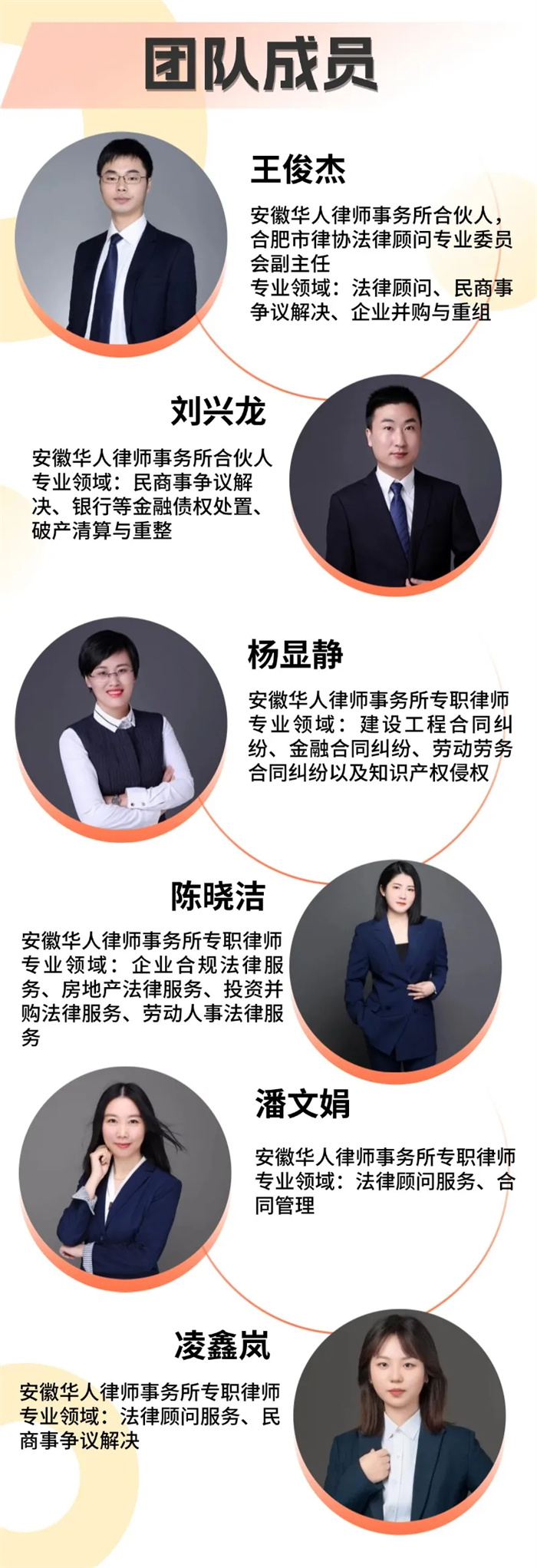 此次项目由华人所合伙人王俊杰律师牵头,组建了一支包含合伙人律师刘兴龙、律师杨显静、陈晓洁、潘文娟、凌鑫岚等精英律师的专业团队,团队成员在各自领域均具有深厚的专业知识和丰富的实践经验,能够为安徽广播电视台提供全方位、高质量的法律服务。