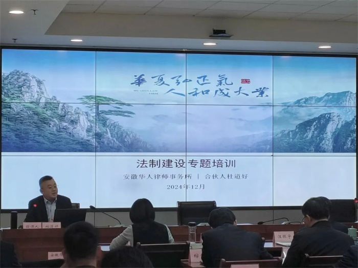 12月10日下午,华人所合伙人杜道好律师应安徽省能源局邀请,以“法治机关建设”为核心议题,为该局带来了一场精彩的专题培训。