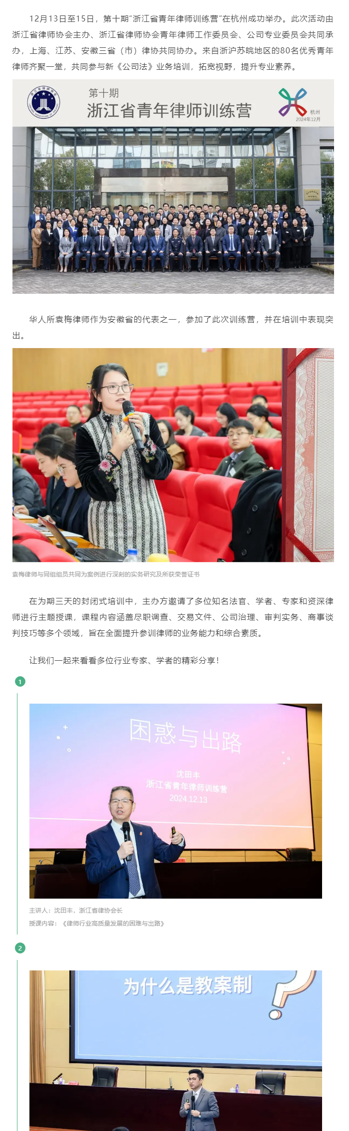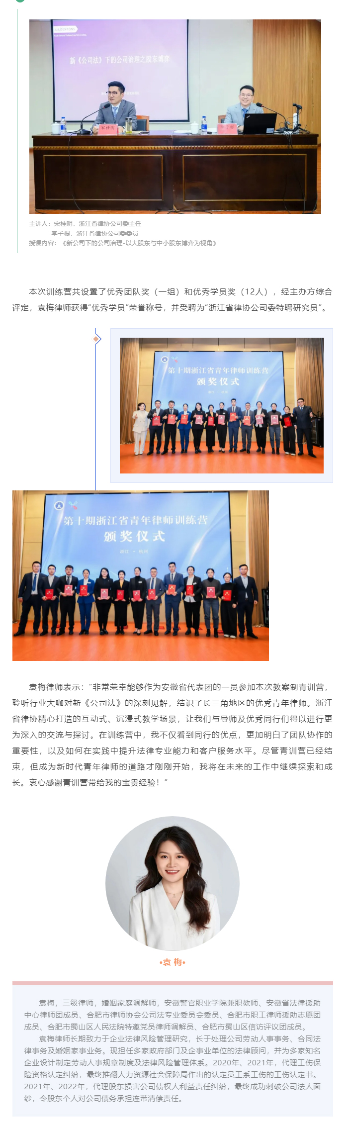 华人资讯 | 华人所袁梅律师应邀参加“第十期浙江省青年律师训练营”并荣获佳绩