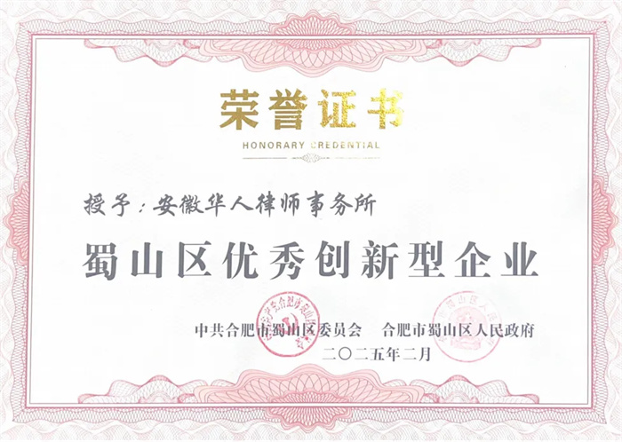 华人资讯 | 华人所荣获“蜀山区优秀创新型企业”称号