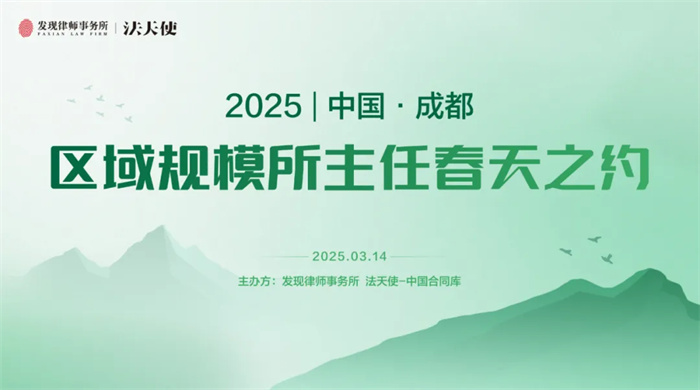 3月14日,由发现律师事务所与法天使-中国合同库联合主办的“区域规模所主任春天之约”在成都圆满落幕。华人所管委会执行主任方廷昌、监委会委员王俊杰、合伙人潘天宇、杨琳受邀参会。本次会议聚焦“区域规模所如何突围”的核心议题,通过闭门真心话、主题研讨等形式,深入探讨了律所管理、科技赋能、跨区域合作等热点问题。
