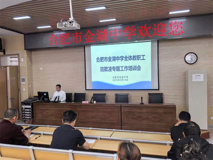 4月16日下午,安徽华人律师事务所合伙人汪奎律师受合肥市金湖中学邀请,为该校全体在职教师举办“防范校园欺凌,守护学生身心健康”专题培训讲座,助力构建平安校园法治防线。