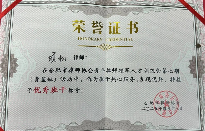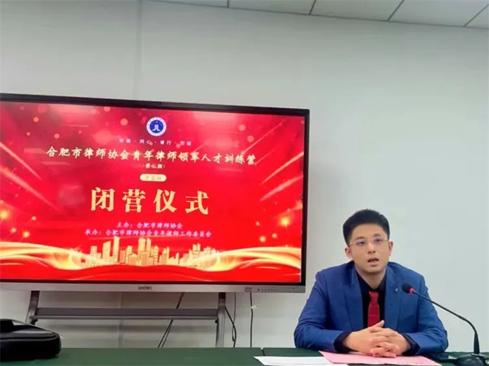 在闭营仪式上,为表彰表现出色的学员,本期青训营秉持公平、公正、公开的原则,对参训学员进行了综合考评,评选出最佳学员组、优秀学员、优秀班干等多个奖项。本所推荐的参训青年律师项松在本次活动中担任学习委员,表现优异,荣获优秀班干荣誉。