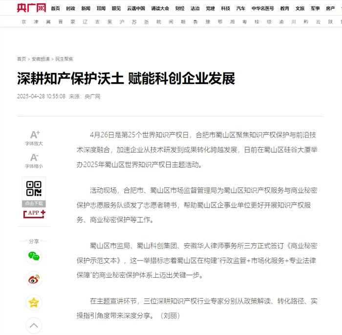华人资讯 | 华人所承办蜀山区世界知识产权日主题活动获多家媒体报道