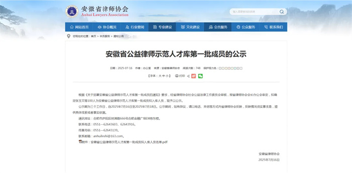 近日,安徽省律师协会为引导广大律师积极投身公益法律服务事业、推动全省律师行业公益工作高质量发展,正式组建 “安徽省公益律师示范人才库”。经严格遴选与审核,华人所高明律师成功入选首批 “安徽省公益律师示范人才库” 成员,这份荣誉既是对高明律师个人公益初心与专业能力的高度认可,更是对华人所积极践行社会责任、深耕公益法律服务领域的充分肯定。