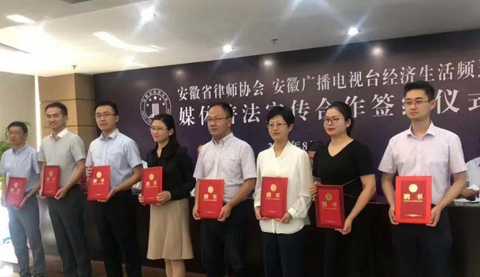 2019-08-09本所隗巍、王华强、武晓梅三位律师入选安徽广电经视频道媒体普法律师团,不忘初心,公益普法骄暑尤未尽,凉风信步来。2019年8月8日,立秋,安徽省律师协会与安徽广播电视台经济生活频道(安徽第一民生频道)举办了媒体律师普法宣传合作的签约仪式,并在仪式上向媒体普法团律师颁发聘书。 2018年初,安徽省律协与安徽广播...
