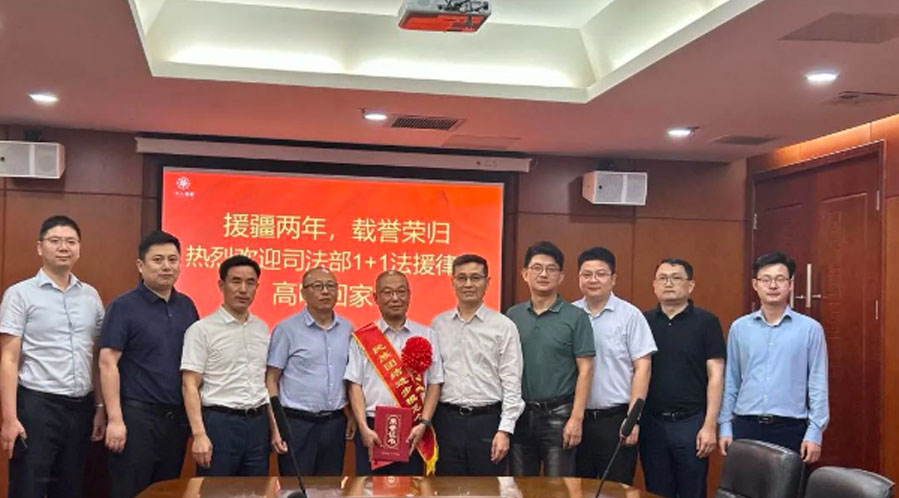 2023-07-18载誉荣归,欢迎华人所1+1法援律师高明回家!两年援疆路,一生援疆情。2021年华人所高明律师踏上援疆之路,去到祖国西部地区进行法律援助工作,助力新疆福海县地区的法治建设。今天,两年的援疆工作圆满完成,满载荣誉的高明回家了!党委书记陶振全、管委会主任杨军及华人所党委、管委会、监督委员会、工会等部分成员,代表全...