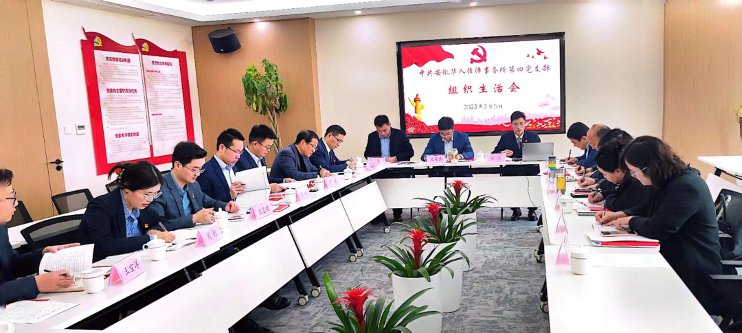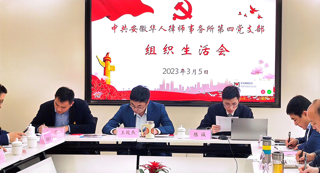 根据中共合肥市律师行业委员会“关于召开2022年度党支部组织生活会和开展民主评议党员的通知”的要求,中共安徽华人律师事务所第四支部委员会于3月5日在华地办公区会议室召开2022年度组织生活会,本所党委书记陶振全同志,党委副书记、纪委书记朱勇同志全程参加指导,支部全体党员同志参加会议。