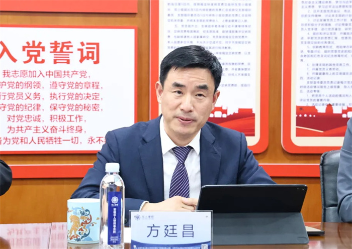方廷昌对马健一行的到来表示热烈欢迎,并介绍了华人律师事务所的发展历程、业务范围以及近几年人才吸引政策。他指出,华人所一直注重人才的引进与培养,期待与法学院建立长期稳定的合作关系,共同开展法律实务培训、实习基地建设等工作,实现学校与律所的资源共享、优势互补。