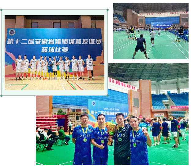 比赛期间,华人律师尽显风采。足球赛场上,华人所徐晓三、张乐明、缪道达、李本茁、徐丁五位律师作为主力成员在半决赛、决赛阶段贡献了三球两助攻数据,用汗水诠释着“永不言弃”的体育精神,最终所在的合肥律协队拿下本届赛事足球冠军,这也是继2023年华人所多位律师入选合肥律协队以来,合肥律协队第二次获得省律协友谊赛足球冠军。此前,为了能在赛场上取得好成绩,他们将“严谨务实”的执业态度融入决赛前的每一场比赛,付出十二分努力,徐晓三律师更是带伤上场,一路过关斩将;篮球赛场,面对强劲对手,华人律师常新宇所在的篮球队始终保持高昂斗志,带球突破、严密防守,最终助力团体在比赛中斩获季军佳绩;羽毛球赛场,潘金鹏、潘正海、江生龙律师在羽毛球赛场上稳定发挥,所在团队收获男子双打季军、羽毛球90岁组男子双打季军、团体赛冠军的好成绩。